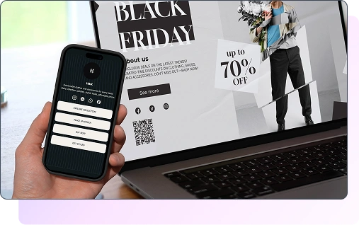 Adgangskodebeskyttelse for følsomme QR-koder, planlagt aktivering og deaktivering, tilpasset domænekonfiguration og sikkerhedsfunktioner i virksomhedsklasse imødekommer professionelle krav. Tilpassede landingssider, der er brandet til at matche din organisation, muliggør sofistikerede brugeroplevelser uden separat webudvikling.