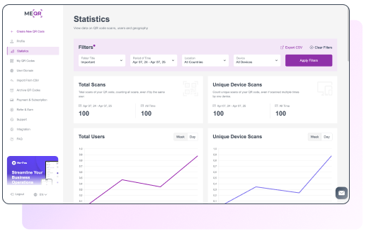 Tidak seperti kebanyakan pesaing, Me-QR memastikan kod QR dinamik kekal aktif walaupun selepas tempoh percubaan tamat. Ciri ini penting untuk perniagaan dan pemasar yang memerlukan kod QR mereka untuk kekal berfungsi tanpa gangguan yang tidak dijangka.